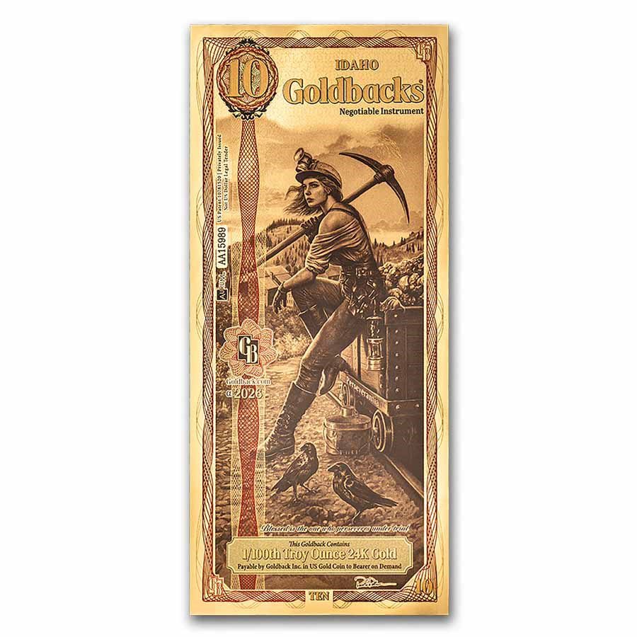 10 Idaho Goldback, Aurum Gold Foil Note (24k)