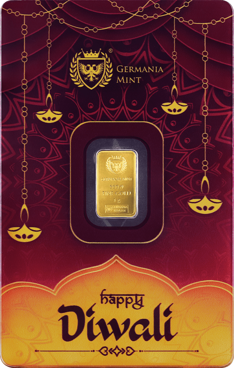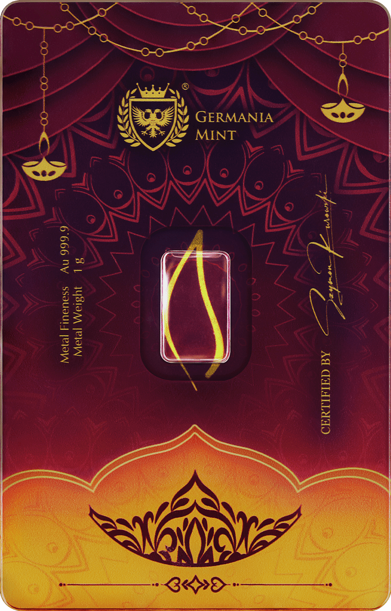 A radiant tribute to tradition and artistry, the Germania Gold Minted Bar 1 g – Diwali is more than a collectable – it is a symbol of joy, light and enduring prosperity.